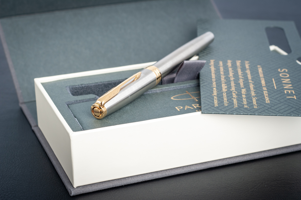 Перьевая ручка Parker Sonnet Stainless Steel GT от официального дилера Parker в Бишкеке. Вы можете дополнительно заказать гравировку, которая подчеркнет Вашу оригинальность и придаст памятность статусному подарку. Все ручки Паркер поставляются в фирменном футляре.